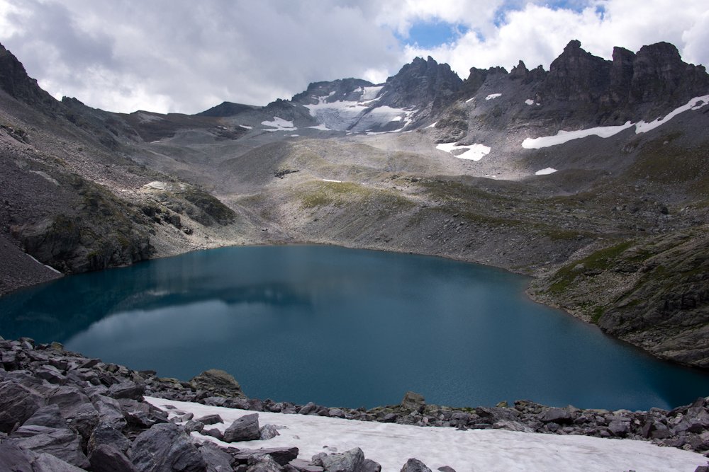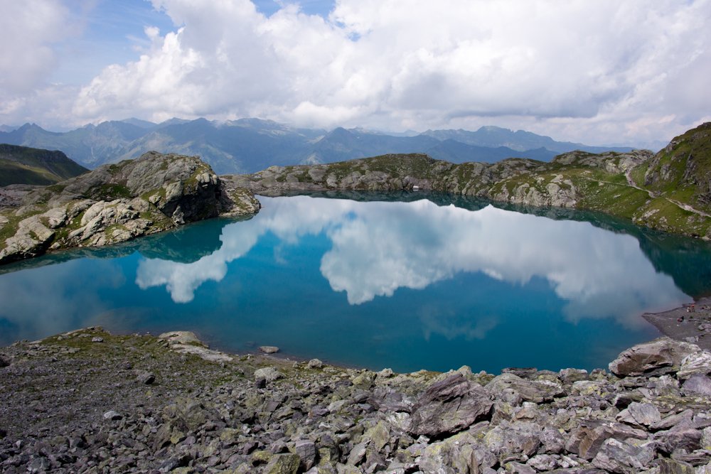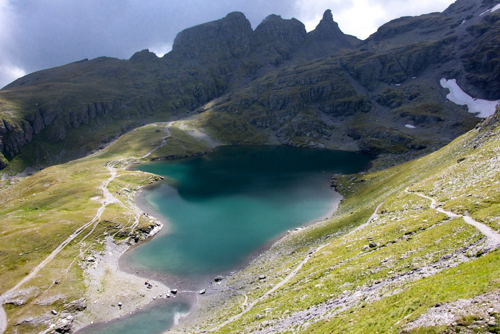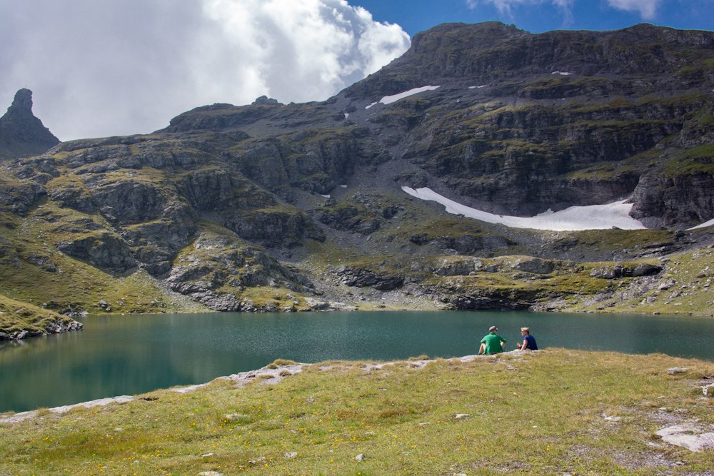 Nach einer knappen halben Stunde Lunchrast geht es für uns dann runter zum Schottensee. Für diesen See alleine hätte sich die Wanderung gelohnt. Tiefes Türkis in welchem sich die Wolken spiegeln, können sogar mich zur Begeisterung bringen. Jetzt erwartete uns noch ein letzter Anstieg zum Wildsee, bevor wir zuletzt noch etwa 45 Minuten hinunter zur Pizolhütte wandern.