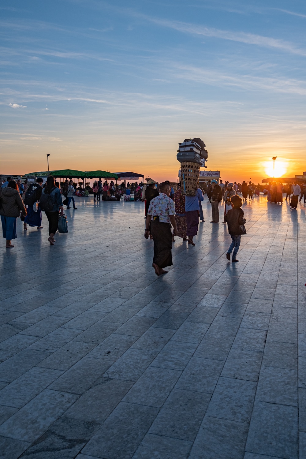 Wir konnten am Freitagabend den Sonnenuntergang ohne grosse Menschenmassen geniessen. Aber auch nach Sonnenuntergang kamen immer noch laufend weitere Pilger auf den Berg an und richteten sich mit mitgebrachten Decken und Schlafsäcken Ihren Schlafplatz auf dem grossen Platz rund um den Golden Rock ein.  Nach einem netten Dinner beobachteten wir das Geschehen noch einige Zeit bevor wir uns schlafen legten.